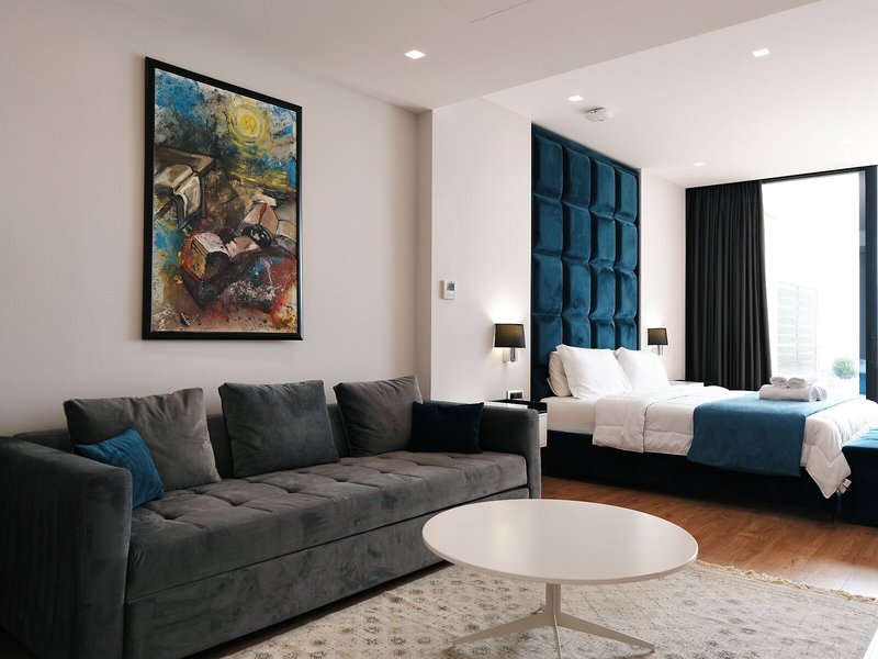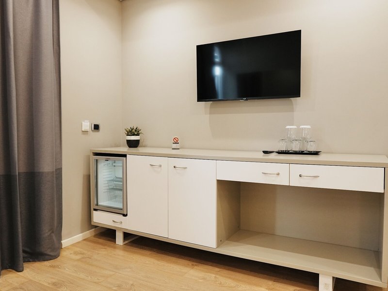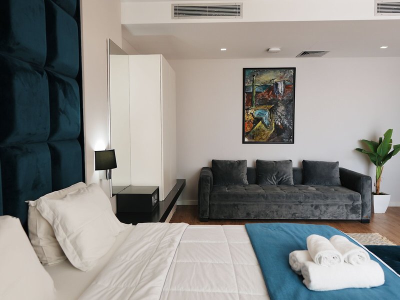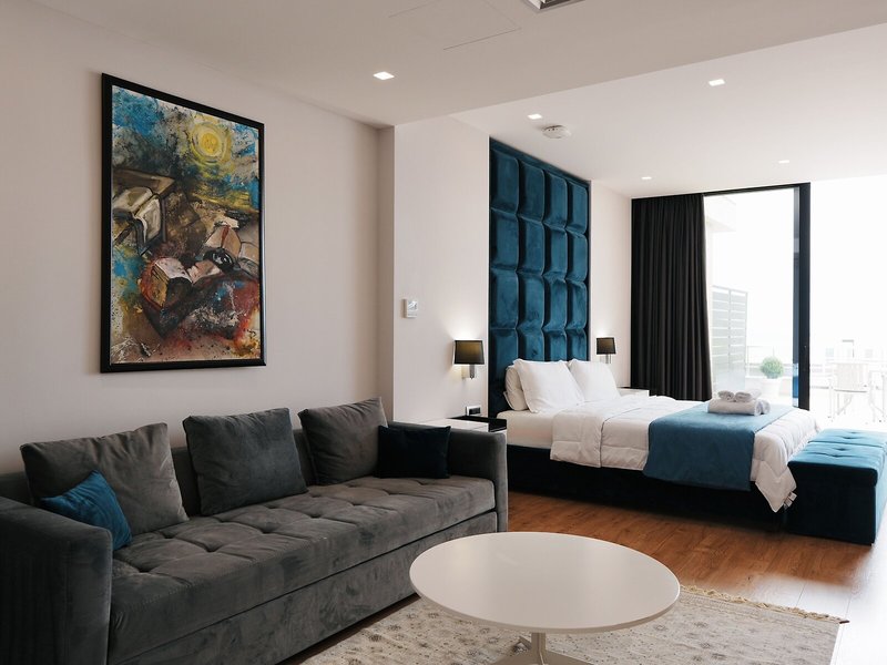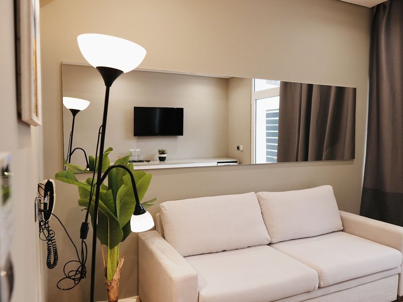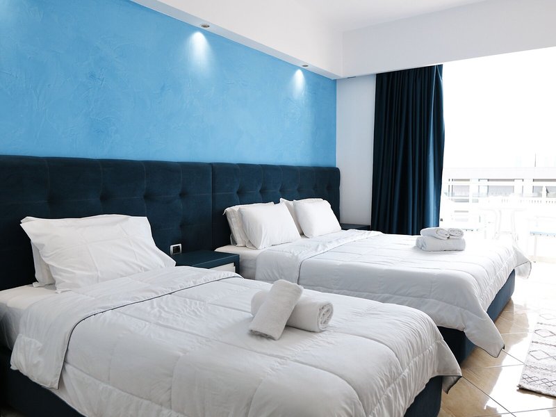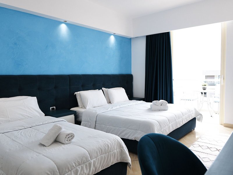 So wohnen Sie: Für angenehmes Raumklima in den Zimmern sorgt eine Klimaanlage. Die Gäste können den Meerblick von Balkon oder Terrasse genießen. Die Zimmer verfügen über ein Kingsizebett und ein Sofabett. Es gibt eine Minibar. Verschiedene Kommunikations- und Unterhaltungsmöglichkeiten werden durch die komfortable Ausstattung mit einem Telefon, einem TV-Gerät und WiFi (ohne Gebühr) gewährleistet. In den Badezimmern gibt es eine Dusche. Für Eltern mit Kindern stehen Familienzimmer zur Verfügung.