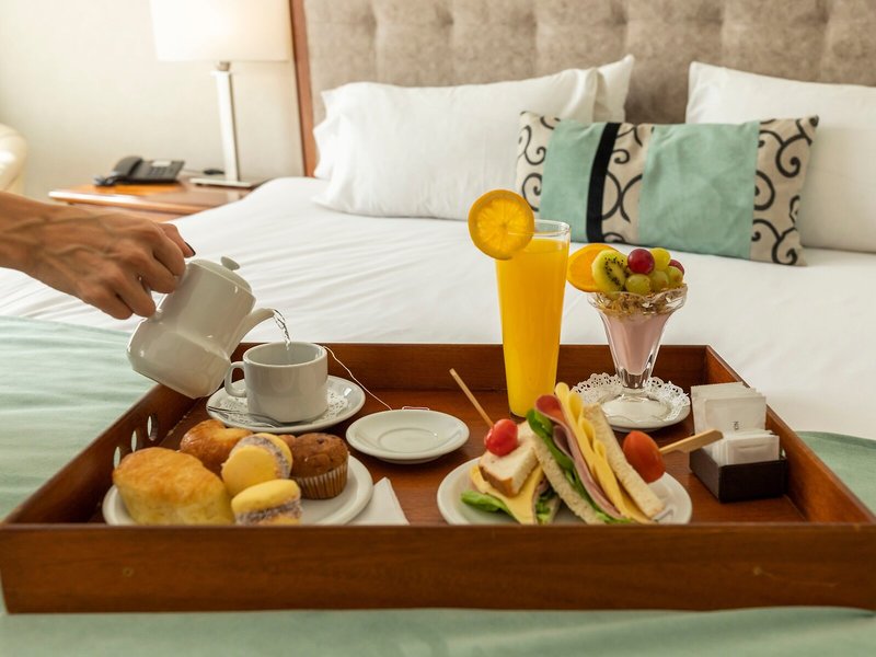 Jedlo a pitie: K dispozícii sú rôzne možnosti stravovania vrátane kaviarne a baru. V nefajčiarskej, klimatizovanej reštaurácii čakajú hostí rôzne špeciality. Hotel ponúka možnosť rezervácie ubytovania s raňajkami. Bohatý raňajkový bufet zaručuje dobrý štart do dňa. K dispozícii sú aj špeciálne jedlá vrátane diétnych možností. Hotel ponúka aj špeciálne cateringové služby.