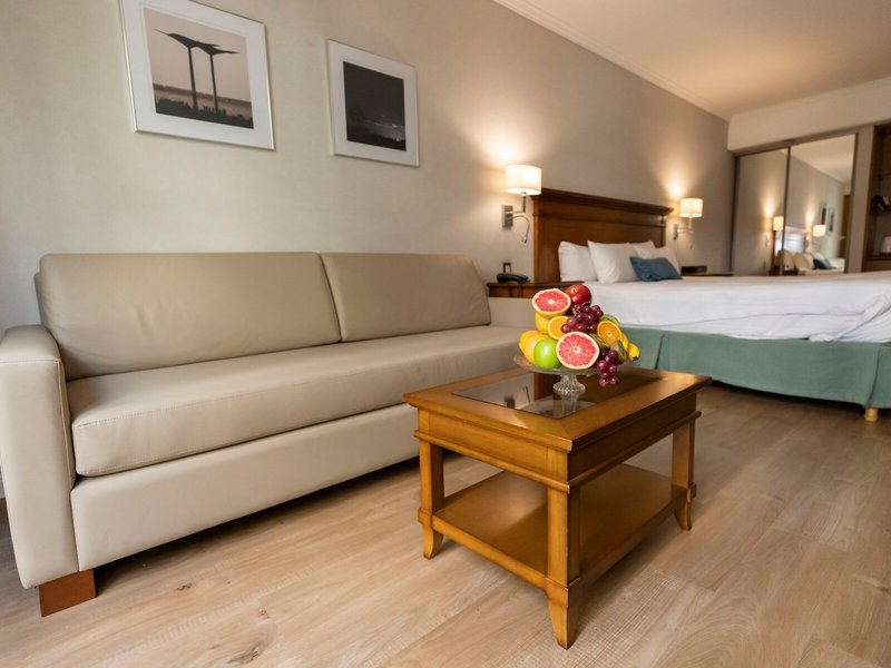 So wohnen Sie: In den Zimmern gibt es eine Klimaanlage und eine individuell steuerbare Heizung. Ein Balkon oder eine Terrasse ist in den meisten Zimmern vorhanden. Die mit Teppichböden ausgestatteten Zimmer verfügen über ein Kingsizebett und ein Sofabett. Zustellbetten können angefordert werden. Außerdem sind ein Safe, eine Minibar und ein Schreibtisch verfügbar. Eine Tee-/Kaffeemaschine zählt ebenfalls zur Standardeinrichtung. Hinzu kommen ein Bügelset und eine Hosenpresse. Für optimalen Komfort sorgen ein Telefon mit Direktwahl, ein TV-Gerät mit Satelliten-/Kabelempfang und WiFi. Die Gäste können den abendlichen Gute-Nacht-Service in Anspruch nehmen. Die Badezimmer sind ausgestattet mit einer Dusche, einer Badewanne, einer Whirlwanne und einem Bidet. Für den täglichen Gebrauch stehen ein Haartrockner und ein Telefon zur Verfügung. Für besonderen Komfort in den Badezimmern sorgen Kosmetikartikel. Außerdem sind rollstuhlgerechte Zimmer mit barrierefreiem Badezimmer buchbar. Die Unterbringung bietet Familien-, Nichtraucher- und Raucherzimmer.