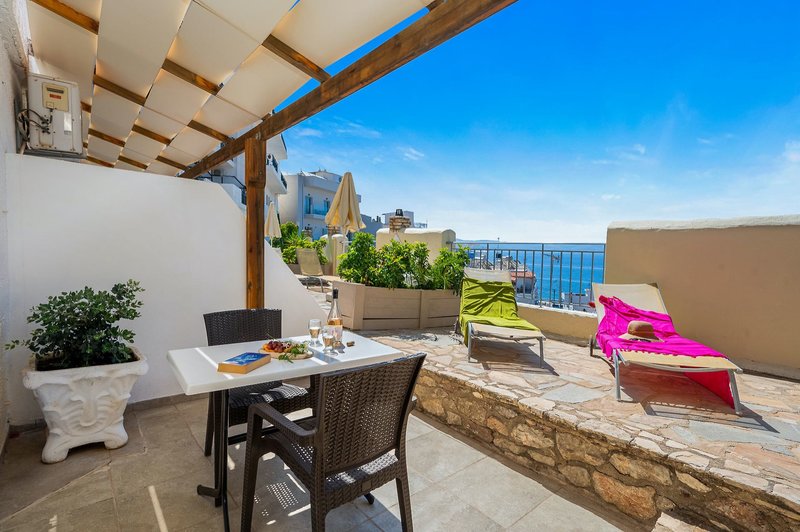 Vybavenie: Apartmány Ariadne ponúkajú ubytovanie vhodné pre rodiny, ponorené do tepla a pohostinnosti Kréty. Čaká na vás 28 komfortných apartmánov a štúdií s balkónmi, z ktorých si môžete vychutnať výhľad na more, dedinu a prístav. Komplex sa rozprestiera v 2 budovách a ponúka recepciu (obsadenú každú hodinu). Pri bazéne nájdete ležadlá a slnečníky, ako aj bar pri bazéne s občerstvením a nápojmi. V taverne s romantickým výhľadom je tradičná krétska kuchyňa, ktorá urobí vašu dovolenku autentickejšou.