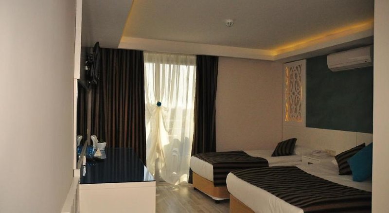 Kedysi sa nazývalo Pamphilia, t.j. granátové jablko. Zaujímavé staroveké mesto je situované na úzkom polostrove s ruinami antických chrámov. Priamo v ich susedstve dnes pulzuje život rušného mestečka s typickými uličkami a množstvom reštaurácií s pestrou ponukou. Novú časť tvoria moderné hotelové komplexy včlenené do okolitej krajiny. Tunajšie pláže patria k najkvalitnejším piesočnatým plážam na Tureckej riviére. Najmä rodiny s deťmi ocenia mierny sklon a pozvoľný vstup do mora. Transfer z letiska trvá približne 1 hodinu a 15 minút.