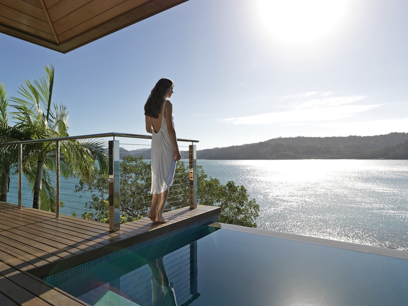 Hotel: qualia – luxusný rezort na jedinečnom, odľahlom mieste na najsevernejšom cípe ostrova Hamilton. Navrhol ho austrálsky architekt Chris Beckingham, harmonicky zapadá do okolitej prírody a pýši sa štýlovou estetikou. Jeho filozofiou bolo vytvoriť rezort, ktorý stimuluje zmysly a odráža prírodný svet vo vnútri. Kamienková pláž, prístupná iba hotelovým hosťom, pozýva na kúpanie a ponúka rôzne vodné športy. K vybaveniu rezortu patria dve reštaurácie, súkromná jedáleň, bar, dva nekonečné bazény, knižnica a kúpele. Na objavovanie ostrova je k dispozícii VIP šofér a golfové vozíky (bez príplatku). Letisko Hamilton Island je vzdialené približne 2 km.
