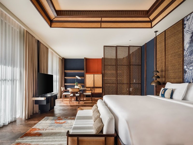 • Tropical Garden Suite (DZG2), Junior Suite, novostavba, záhradná strana, výhľad do záhrady, výhľad do dvora, cca. 83 m², posledná kompletná rekonštrukcia v roku 2025, posledná čiastočná rekonštrukcia v roku 2024, celkový počet izieb v tomto type izby: 1, rozloženie: kombinovaná obývacia izba/spálňa, 1 manželská posteľ (200x200 cm), detská postieľka: zadarmo, klimatizácia: zadarmo, individuálne ovládaná, podlaha: koberec, parkety, trezor: zadarmo, pohovka, písací stôl, žehlička, žehliaca doska, kávovar na espresso, kávovar/čajník, jedálenský stôl, minibar: zadarmo, nealkoholické nápoje: zadarmo, voda: zadarmo, občerstvenie: zadarmo, dopĺňanie minibaru: niekoľkokrát týždenne, telefón, internet: WLAN/WiFi: zadarmo, televízor: plochá obrazovka, v spálni, satelitná TV, káblová TV, izbová služba: denne, za poplatok, služba komorníka: denne, zadarmo, upratovacia služba: denne, zadarmo, sprcha, dažďová sprcha, vaňa, WC, samostatné WC, župan: zadarmo, papuče: zadarmo, fén, kozmetické zrkadlo, terasa: strešná terasa, s ležadlami, s posedením, s súkromná záhrada