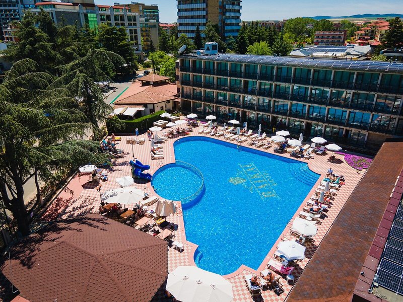 Poloha a okolie Hotelový komplex sa nachádza v centre prímorského letoviska Slnečné pobrežie, približne 150 m od kilometrovej piesočnatej pláže. Pozýva na kúpanie, prechádzku alebo zastavenie v jednom z barov. Je to približne 4 km od malebného historického starého mesta a starobylých miest Nessebar.