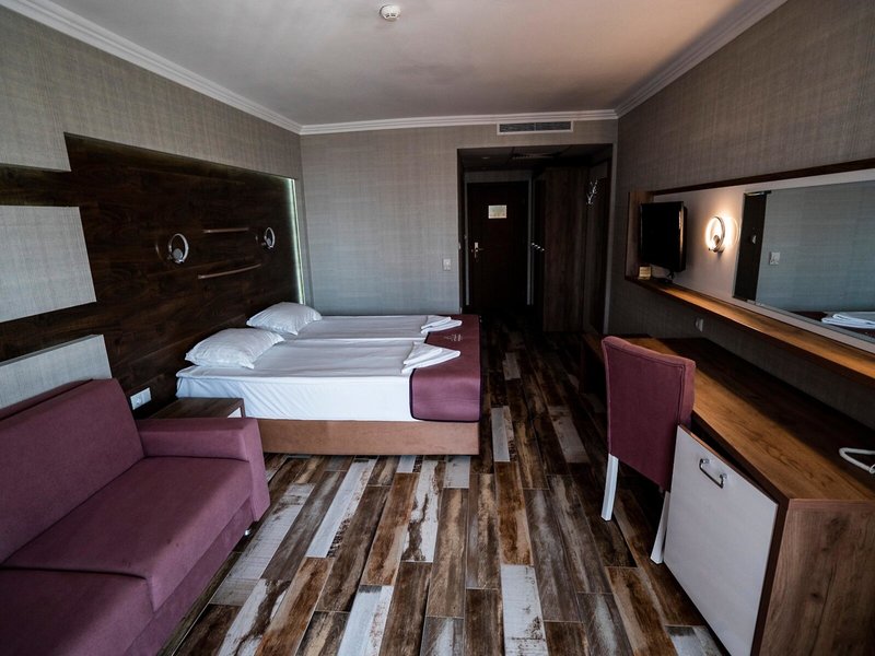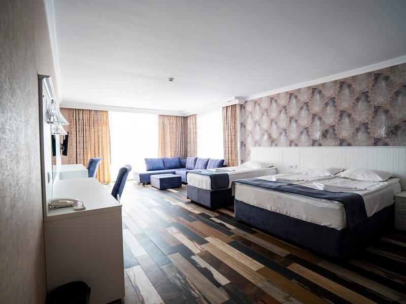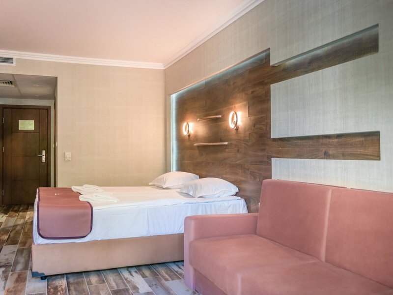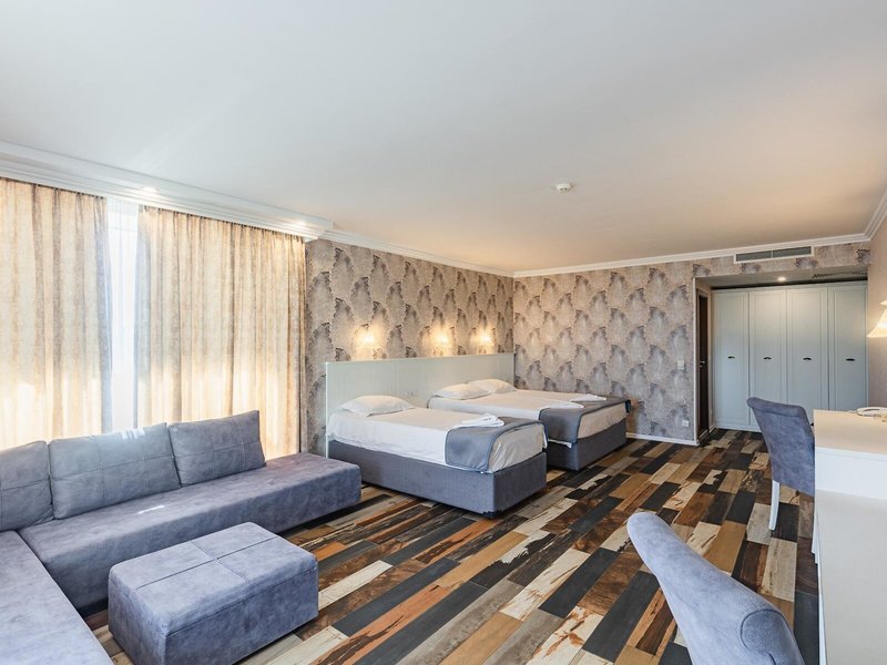 - Suita Junior (JSX1), suita junior, nefajčiarska izba, v hlavnej budove, cca 45 m², posledná kompletná rekonštrukcia v roku 2018, celkový počet izieb v tomto type izby: 1, rozloženie: kombinovaná obývacia izba/spálňa , 2 rozkladacie pohovky (90x200cm), klimatizácia: bez poplatku, individuálne nastaviteľná, podlaha: dlažba, sedačka, telefón, TV: plochá obrazovka, v spálni, upratovanie: 8:00 - 15:00, bez poplatku , sprcha, WC, balkón alebo terasa: s posedením