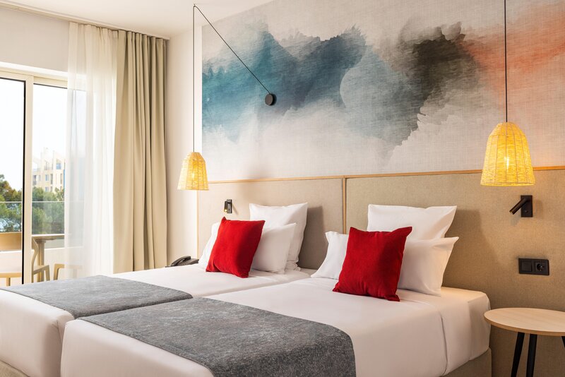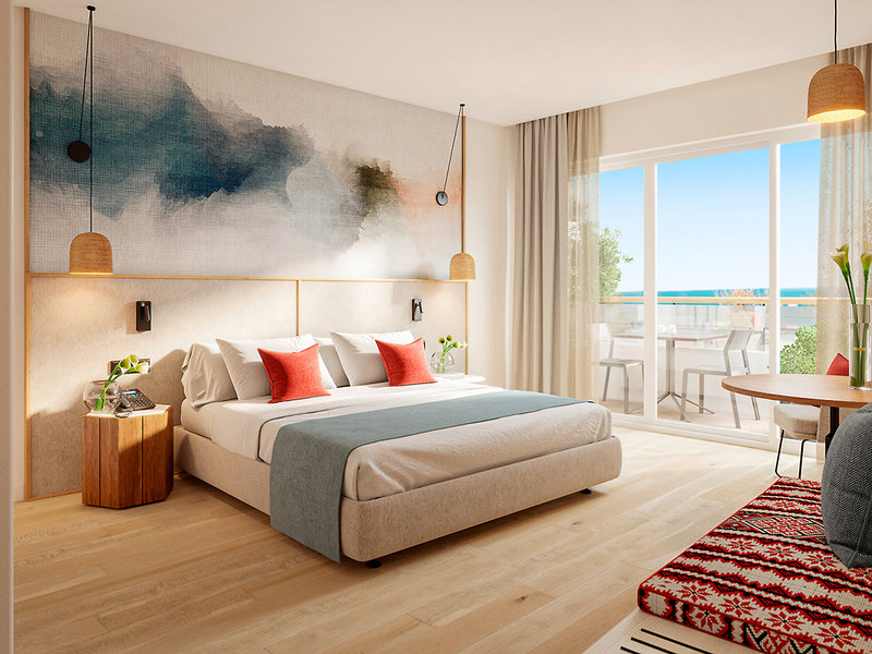 Ubytovanie: Dvojlôžková izba Superior (DSD, cca 32 m²), klimatizácia, Wi-Fi, TV, minichladnička, trezor. Sprcha, WC, fén. Balkón. Max. 2 dospelí, možnosť rezervácie s výhľadom na bazén (DSP) alebo výhľadom na more (DSM).