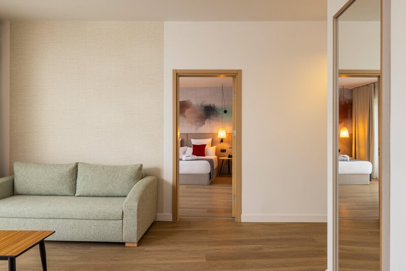 Wohnen: Doppelzimmer Superior (DSD, ca. 32 qm), Klimaanlage, WLAN, TV, Minikühlschrank, Safe. Dusche, WC, Föhn. Balkon. Max. 2E, wahlweise mit Poolblick (DSP) oder Meerblick (DSM) buchbar