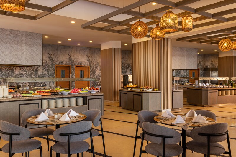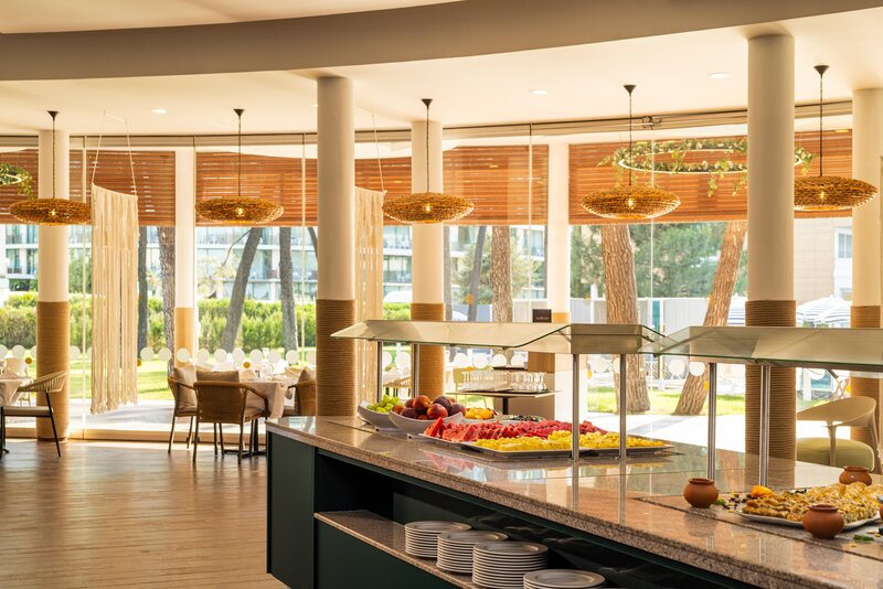 Ausstattung: Komplett renovierte Hotelanlage mit 2 Swimmingpools, Liegen und Schirme am Pool, Poolbar, Snackbar. Empfangsbereich mit Rezeption, WLAN (in der gesamten Anlage inklusive), 4 Restaurants, darunter 1 Buffetrestaurant und 1 À-la-carte-Restaurant, 1 Bar, Diskothek. Landeskategorie: 4 Sterne, 397 Zimmer.