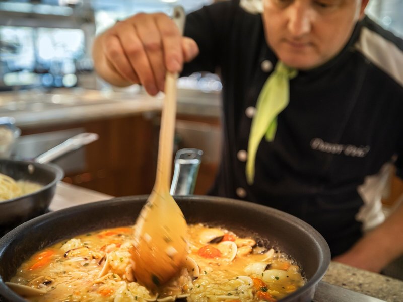 - Hauptrestaurant: Küche: international, mediterran, Buffet, Showcooking, Mai - September, täglich 07:00 Uhr - 10:00 Uhr und 18:30 Uhr - 21:00 Uhr, klimatisierbar