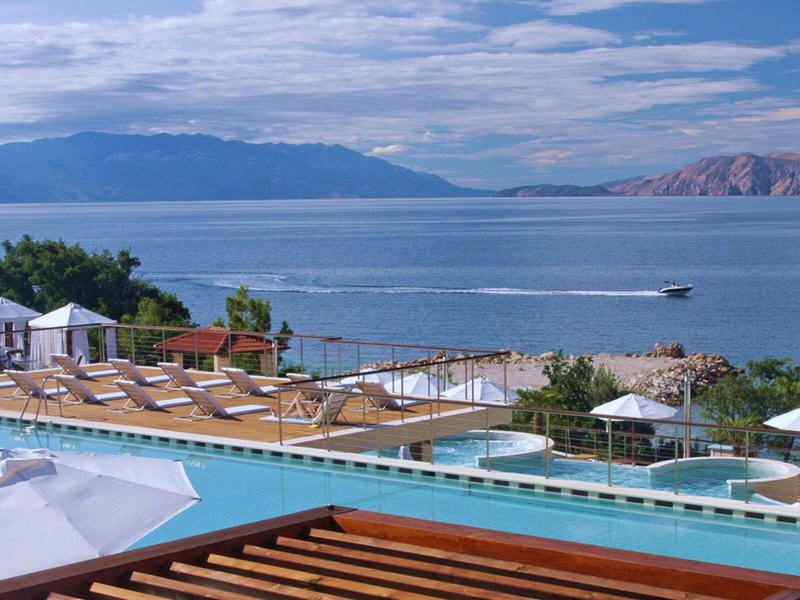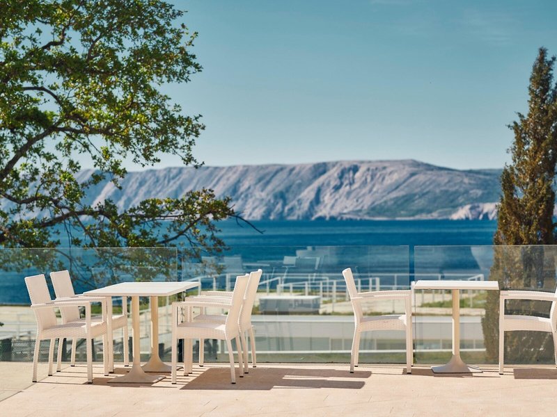 atemberaubenden Blick auf das kobaltblaue Meer und die Insel Krk. Geräumige Zimmer, erstklassige Annehmlichkeiten und ein