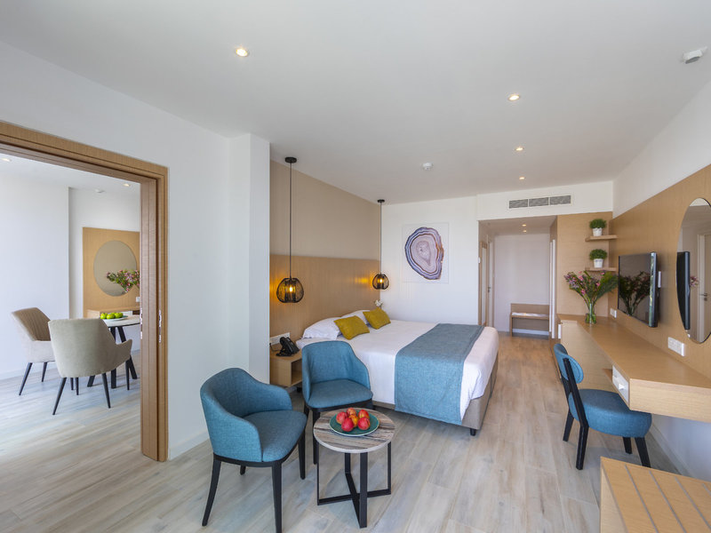 • Executive Suite Sea View (SUM1), Suite, Nichtraucherzimmer, im Hauptgebäude, Meerblick, Buchtblick, ca. 36 m², letzte Komplettrenovierung 2019, Gesamtanzahl der Räume in diesem Zimmertyp: 1, Aufteilung wie folgt: kombiniertes Wohn-/Schlafzimmer, 1 Einzelbett (80x180cm), 1 Doppelbett (137x190cm), Klimaanlage: ohne Gebühr, wetterabhängig, Heizung: wetterabhängig, Fußboden: Fliesenboden, Safe: ohne Gebühr, Kühlschrank: ohne Gebühr, Kaffee-/Teezubereiter, Internet: WLAN/WiFi: ohne Gebühr, Fernseher: Flatscreen, Reinigungsservice: täglich, ohne Gebühr, Dusche, WC, Balkon oder Terrasse