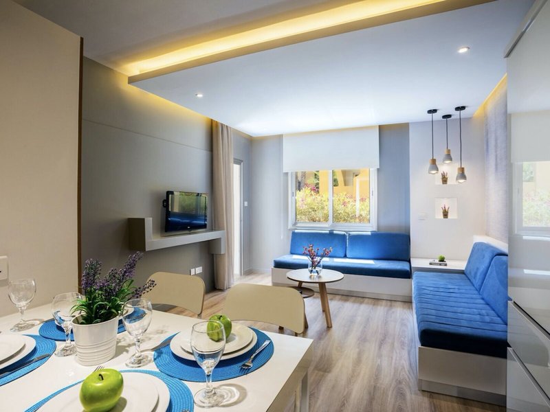 So wohnen Sie: In den Zimmern finden sich ein Wohnzimmer, eine Küche und ein Badezimmer, für ein behagliches Raumklima sorgen eine Klimaanlage, eine Heizung und ein Ventilator. Die Gäste können den Gartenblick von Balkon oder Terrasse genießen. Die Zimmer verfügen über ein Doppelbett, ein Queensize-Bett oder ein Sofabett. Es sind separate Schlafzimmer vorhanden. Kinderbetten für die jüngsten Gäste sind ebenso vorhanden. Die Kochnische ist mit einem Kühlschrank, einer Mikrowelle, einer Tee-/Kaffeemaschine und einem Backofen gut für Selbstversorger ausgestattet. Besten Urlaubskomfort bieten ein Telefon mit Direktwahl, ein TV-Gerät mit Satelliten-/Kabelempfang und WiFi (ohne Gebühr). Im Badezimmer, ausgestattet mit einer Dusche und einer Badewanne, gibt es einen Haartrockner. Das Feriendorf bietet Familien- und Nichtraucherzimmer.