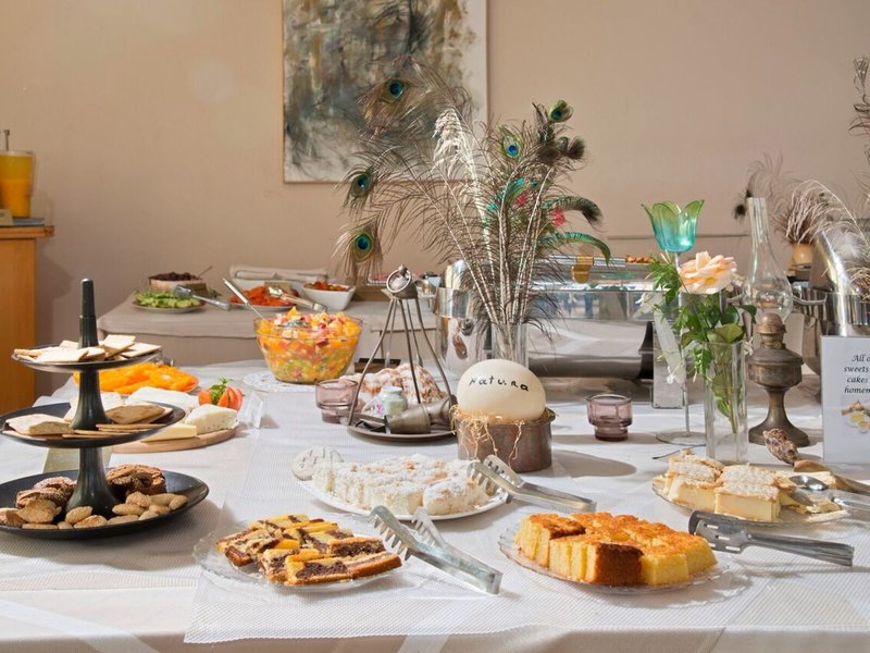 Jedlo a nápoje: Hotel ponúka stravovacie služby v reštaurácii, raňajkovej miestnosti, kaviarni a bare. Hostia si môžu rezervovať ubytovanie s raňajkami alebo polpenziu. Na raňajky a večere je k dispozícii bohatý bufet. Na obed a večeru je k dispozícii široký výber jedál à la carte.