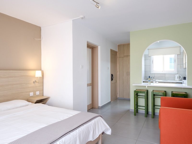 Poloha a okolie Tento atraktívny plážový hotel má dobrú centrálnu polohu v turistickom centre. Verejná doprava je len asi 100 m od hotela. V blízkom okolí (cca 100 m) nájdete širokú škálu nákupných možností, ako aj početné reštaurácie, rôzne bary, krčmy, kaviarne a celý rad ďalších zábavných podnikov. Príjemná pláž s tyrkysovo modrým morom je vzdialená asi 200 m. Do nočného klubu sa dostanete pešo za pár minút (asi 1 km). Do neďalekého centra mesta (cca 3 km) sa ľahko dostanete pešo dlhou prechádzkou, lacno verejnou dopravou alebo pohodlne autom. Prístav Paphos je vzdialený približne 1,5 km a letisko Paphos približne 15 km od hotela.