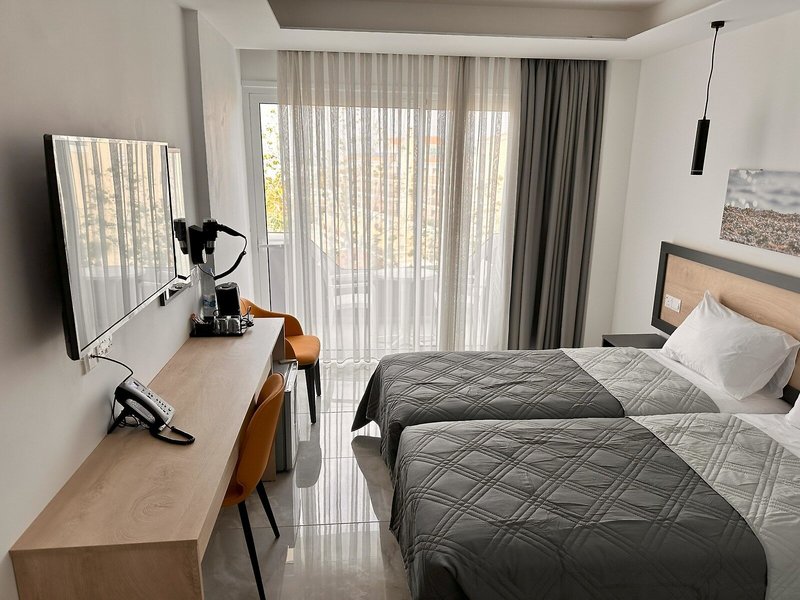 • Twin LSV (DZM2), Doppelzimmer, im Hauptgebäude, Meerblick, eingeschränkter Meerblick, ca. 22 m², Gesamtanzahl der Räume in diesem Zimmertyp: 1, 2 Einzelbetten (80x190cm), Babybett, Klimaanlage: zentral gesteuert, Heizung: zentral gesteuert, Fußboden: Fliesenboden, Safe, Schreibtisch, Internet: WLAN/WiFi, Fernseher, Badewanne oder Dusche, Balkon