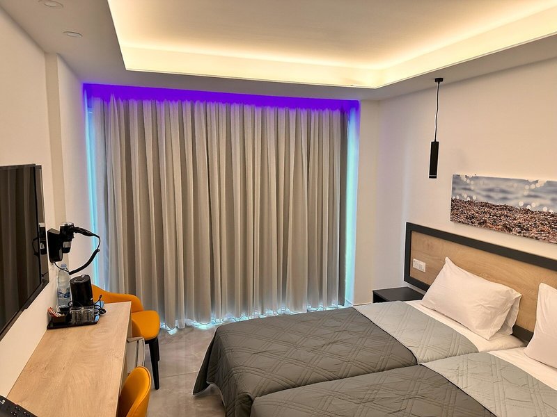 • Twin LSV (DZM2), dvojlôžková izba, v hlavnej budove, výhľad na more, obmedzený výhľad na more, cca 22 m², celkový počet izieb v tomto type izby: 1, 2 samostatné lôžka (80x190cm), detská postieľka, klimatizácia: centrálne ovládané, kúrenie: centrálne ovládané, podlaha: dlažba, trezor, písací stôl, Internet: WLAN/WiFi, TV, vaňa alebo sprcha, balkón