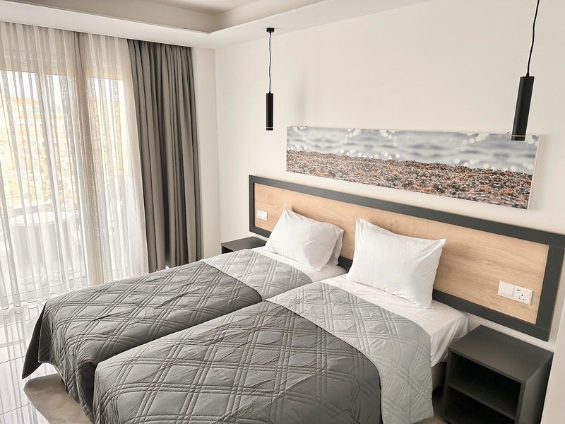 • Twin SV (DZM3), dvojlôžková izba, morská strana, strana bazéna, výhľad na more, celkový počet izieb v tomto type izby: 1, rozloženie: 1 spálňa, klimatizácia, trezor: zdarma, rýchlovarná kanvica, TV, izba servis, vaňa alebo sprcha, balkón