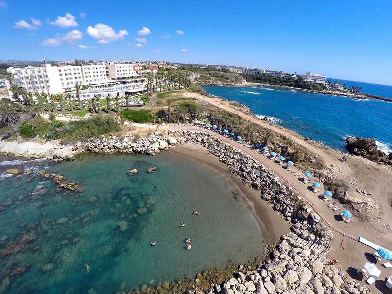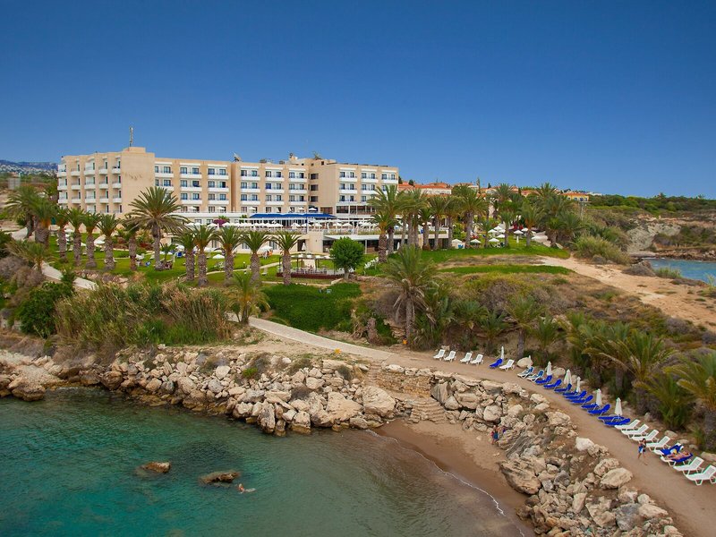 Poloha a okolie Tento atraktívny plážový hotel sa nachádza nad malou zátokou, v úžasnom prostredí medzi banánovými plantážami a krásnym modrým morom. Rozsiahle záhrady sa tiahnu až k pláži a sú ideálne na pozorovanie západov slnka. V bezprostrednej blízkosti sa nachádza množstvo reštaurácií a barov (približne 250 m). Verejná doprava je v pešej vzdialenosti (približne 250 m). Pravidelné spoje premávajú do Pafosu, ktorý je vzdialený približne 8 km, a do zálivu Coral Bay (približne 3 km).