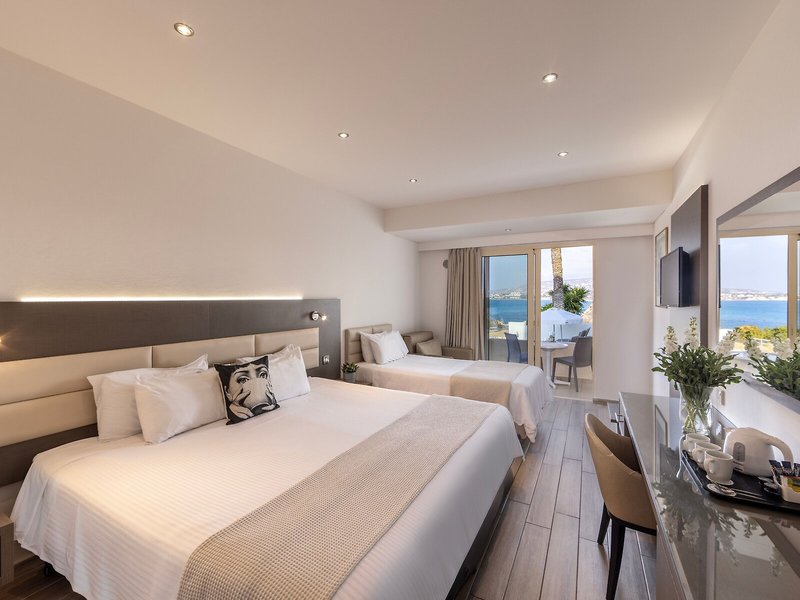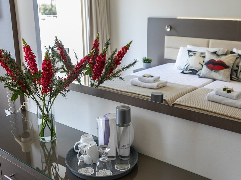 Vaše ubytovanie: Klimatizácia a kúrenie zabezpečujú príjemnú vnútornú klímu. Väčšina ubytovacích jednotiek ponúka z balkóna alebo terasy výhľad na more. Izby sú vybavené manželskou posteľou a rozkladacou pohovkou. K dispozícii sú samostatné spálne. Môžu byť k dispozícii aj detské postieľky a prístelky. K dispozícii je aj trezor a písací stôl. Pre jednoduchšie vlastné stravovanie sú ubytovacie jednotky vybavené chladničkou a zariadením na prípravu čaju/kávy. Pre väčšie pohodlie hostí je k dispozícii žehliaca súprava. K vybaveniu patrí telefón s priamou voľbou, TV so satelitnými/káblovými programami, rádio a Wi-Fi pripojenie na internet (bezplatne). Kúpeľňa so sprchovacím kútom a vaňou je vybavená aj sušičom vlasov. Pre väčšie pohodlie sú v kúpeľniach k dispozícii toaletné potreby a výber uterákov. Hotel ponúka rodinné a nefajčiarske izby.