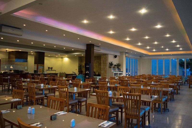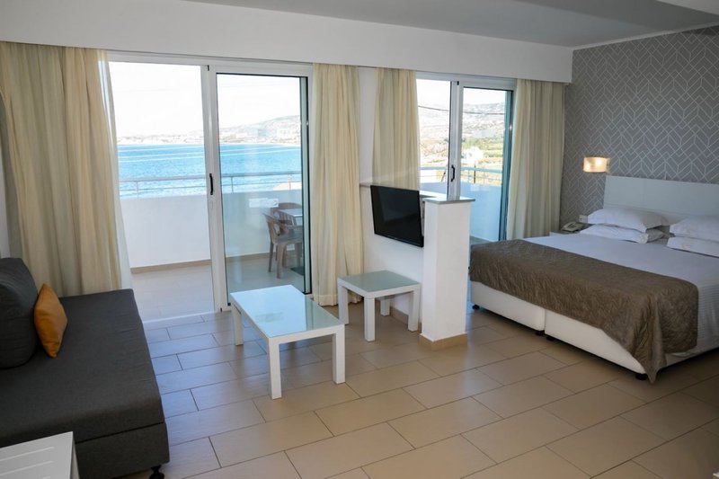 Ausstattung: Die weitläufige Hotelanlage umfasst 211 Zimmer, die sich auf mehrere Gebäude verteilen. Sie bietet eine großzügige Lobby mit einer 24-h-Rezeption, einem Gepäckraum sowie ein Minimarkt/Souvenirshop. Für kulinarische Vielfalt sorgen die zwei Restaurants "Christina" und "Andriana" mit einer jeweils herrlichen Aussicht auf das Meer. In der Gartenanlage befindet sich die "Theo Café & Poolbar" sowie zwei großzügige Swimmingpools. Sonnenliegen und Schirme stehen am Pool kostenfrei zur Verfügung, am Strand gegen Gebühr. Wi-Fi ist innerhalb der gesamten Hotelanlage inklusive.