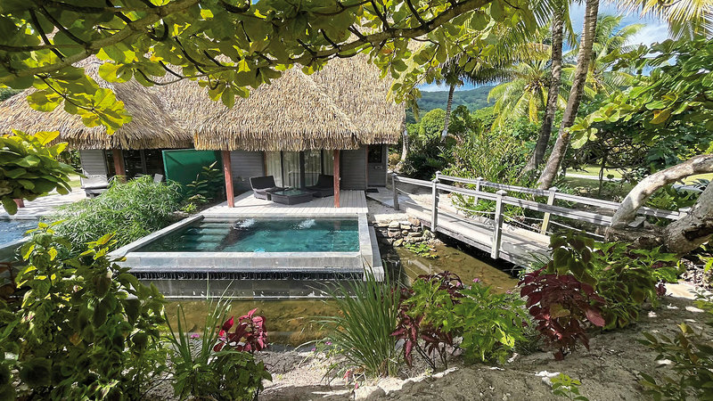 • 41-45 qm, Bungalow, Gartenblick, Dusche, WC, Haartrockner, Klimaanlage, Minibar kostenpflichtig, Safe, TV, WLAN, Wasserkocher, Kaffee/Tee, Terrasse, Privatpool, (1 Flasche)