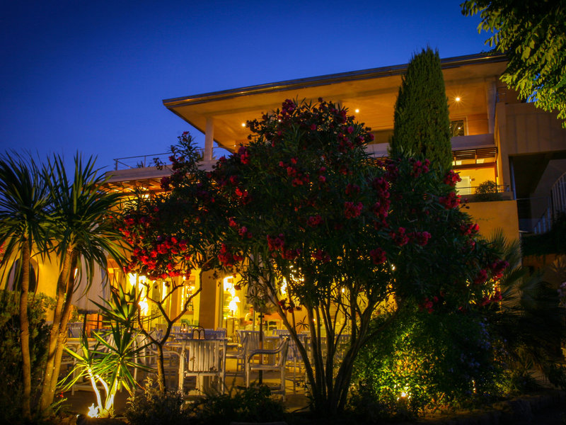 schöner Gartenanlage, wo sich Macchia und Meeresduft vermischen. Das bei Stammgästen beliebte Hotel verfügt über ein klimatisiertes Restaurant mit