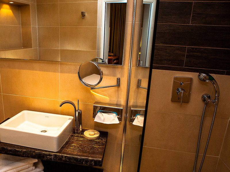 - Junior Suite Garden Side (JSG1), Junior Suite, v hlavnej budove, strana do záhrady, výhľad do záhrady, cca 38 m², kombinovaná obývacia izba/spálňa, pozostáva z 2 izieb, vizuálne oddelených posuvnými dverami, 1 manželská posteľ (160x200cm ), 2 prístelky (80x190cm), Klimatizácia: studená, teplá, podlaha: parkety, trezor, pohovka, písací stôl, espresso kávovar, kávovar/čajník, rýchlovarná kanvica, minibar: nealko, voda, alkoholické nápoje, občerstvenie, telefón, Internet: WLAN/WiFi, TV: plochá obrazovka, v obývacej časti, v spálni, káblová TV, sprcha, WC, papuče, sušič vlasov, kozmetické zrkadlo
