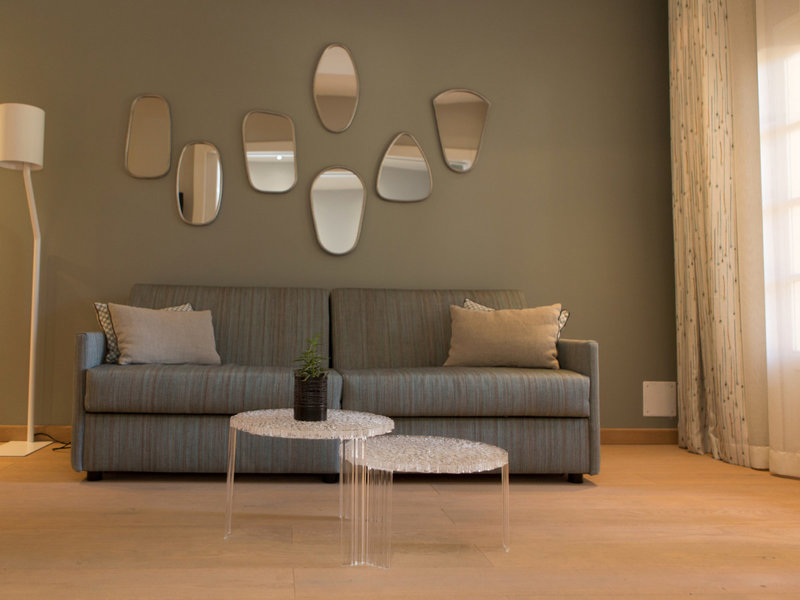 - Junior Suite Garden Side (JSG1), Juniorsuite, im Hauptgebäude, Gartenseite, Gartenblick, ca. 38 m², kombiniertes Wohn-/Schlafzimmer, bestehend aus 2 Zimmern, optisch getrennt durch Schiebetür, 1 Doppelbett (160x200cm), 2 Zustellbetten (80x190cm), Klimaanlage: kalt, warm, Fußboden: Parkett, Safe, Sofa, Schreibtisch, Espressomaschine, Kaffee-/Teezubereiter, Wasserkocher, Minibar: Softdrinks, Wasser, alkoholische Getränke, Snacks, Telefon, Internet: WLAN/WiFi, Fernseher: Flatscreen, im Wohnbereich, im Schlafzimmer, Kabel-TV, Dusche, WC, Slipper, Föhn, Kosmetikspiegel