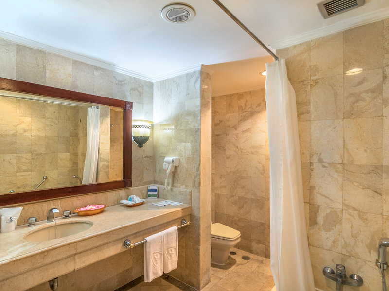 Takto sa ubytujete: Klimatizácia zabezpečuje príjemnú vnútornú klímu v izbách. Hostia si môžu vychutnať výhľad na more z balkóna alebo terasy. Izby majú manželskú posteľ. Prístelky je možné vyžiadať. K dispozícii je aj trezor, minibar a pracovný stôl. K dispozícii je tiež chladnička, minichladnička a príslušenstvo na prípravu čaju/kávy. Telefón s priamou voľbou, TV so satelitným/káblovým príjmom, rádio a WiFi ponúkajú ten najlepší dovolenkový komfort. K vybaveniu izieb patria papuče. V kúpeľni so sprchovacím kútom a vaňou nájdete sušič vlasov a telefón. Kozmetické výrobky zaisťujú extra pohodlie v kúpeľniach. Rezervovať je možné aj bezbariérové izby s bezbariérovými kúpeľňami. Ubytovanie ponúka nefajčiarske a fajčiarske izby.