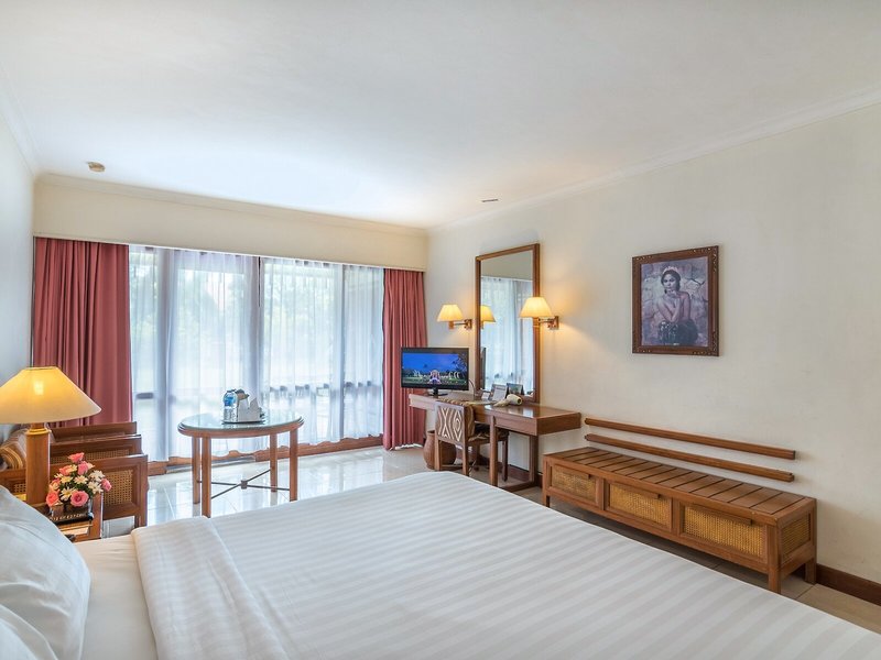 Poloha a okolie Očarujúci hotel má krásnu polohu priamo na krásnom úseku pláže Sanur na Bali. Obklopujú ho exotické palmové háje. Mesto Denpasar s rôznymi nákupnými a zábavnými možnosťami je vzdialené približne 7 kilometrov. Zábavné centrum Kuta je vzdialené asi 30 minút jazdy autom.