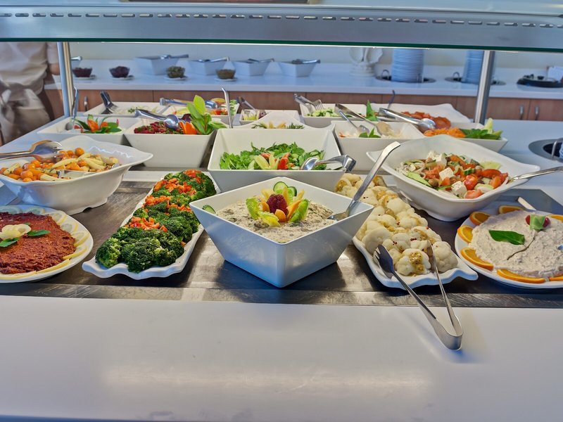 Essen & Trinken: Die gastronomischen Einrichtungen umfassen ein Restaurant, ein Café und eine Bar. Erfrischende Drinks an der Strandbar sorgen für Wohlfühlmomente. Das Resort bietet als buchbare Verpflegungsleistungen Halbpension, Vollpension und All-Inclusive. Frühstück, ein Mittagessen à la carte und ein vielfältiges Abendbuffet sind lecker und abwechslungsreich gestaltet. Vegetarische Gerichte und Kindermenüs werden auf Wunsch zubereitet. Darüber hinaus stellt die Unterbringung Snacks bereit. Eine besondere Attraktion ist das Showcooking. Die Anlage führt ein Sortiment alkoholischer und alkoholfreier Getränke.