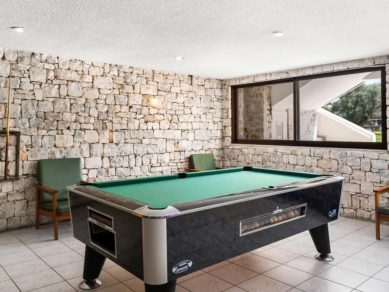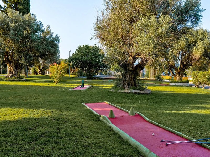 Šport & Fitness: Vonkajší bazén s detskou časťou je ideálny pre aktívny oddych a pravidelný aqua tréning. Na slnečnej terase sú k dispozícii ležadlá a slnečníky. Osviežujúce nápoje sú k dispozícii v bazéne/snack bare. Ubytovanie ponúka vonkajšie športové možnosti vrátane cyklistiky/horskej cyklistiky, tenisu, boccie, plážového volejbalu, volejbalu, basketbalu a minigolfu. Milovníci vodných športov si tiež prídu na svoje pri vodnom lyžovaní, vodnom skútri, banánovom člne, kanoistike, katamarane a aqua fitness. Hostia si môžu v rezorte vychutnať širokú škálu indoorových športov vrátane posilňovne, stolného tenisu, biliardu, šípok, jogy a aerobiku. Ubytovanie ponúka rôzne možnosti wellness, ako sú kúpele, sauna, parný kúpeľ, kozmetický salón a masáže. Zábavný program, miniklub a diskotéka zabezpečia tú najlepšiu zábavu vo voľnom čase.
