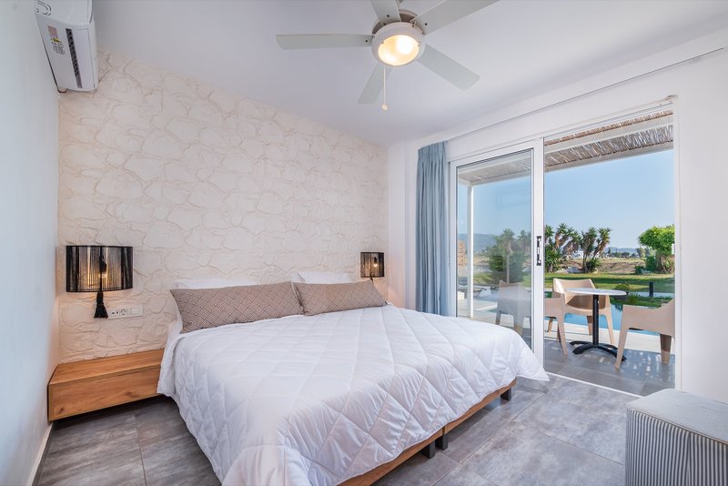 Doppelzimmer Deluxe Sharing Pool: Sind in den frisch renovierten Gebäuden im Erdgeschoss gelegen und verfügen bei gleicher Innenausstattung wie die Doppelzimmer Deluxe privater Garten über einen direkten Zugang zum neu gebauten Sharing Pool mit privaten Sonnenliegen auf der Terrasse anstelle eines privaten Gartens (XH2/2QW). Wahlweise zur Alleinnutzung buchbar (WU1).