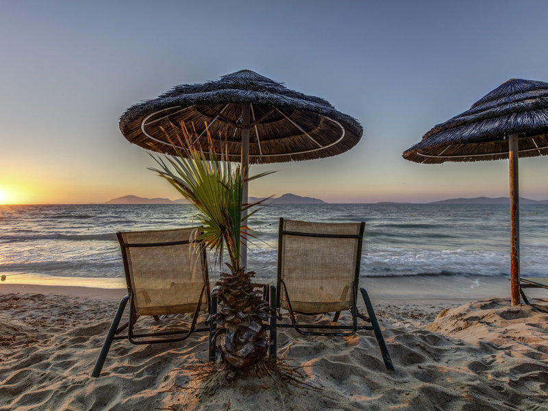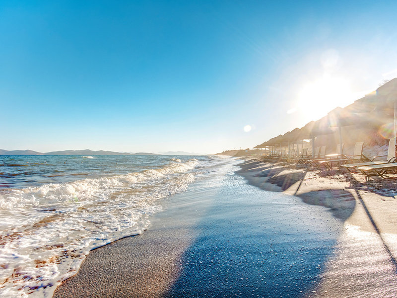 - Strand: Sand, flach abfallend, öffentlich, Liegen, Sonnenschirme