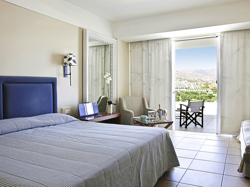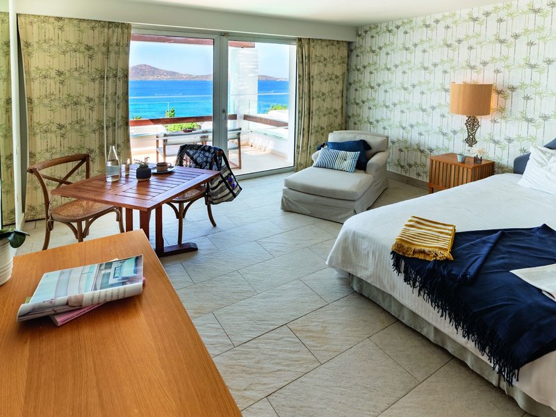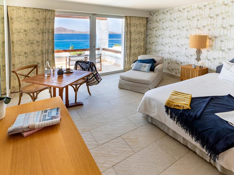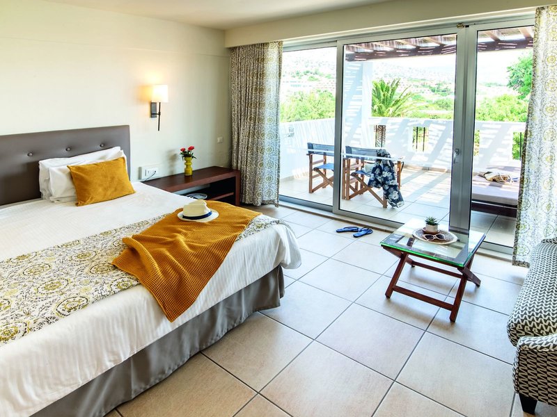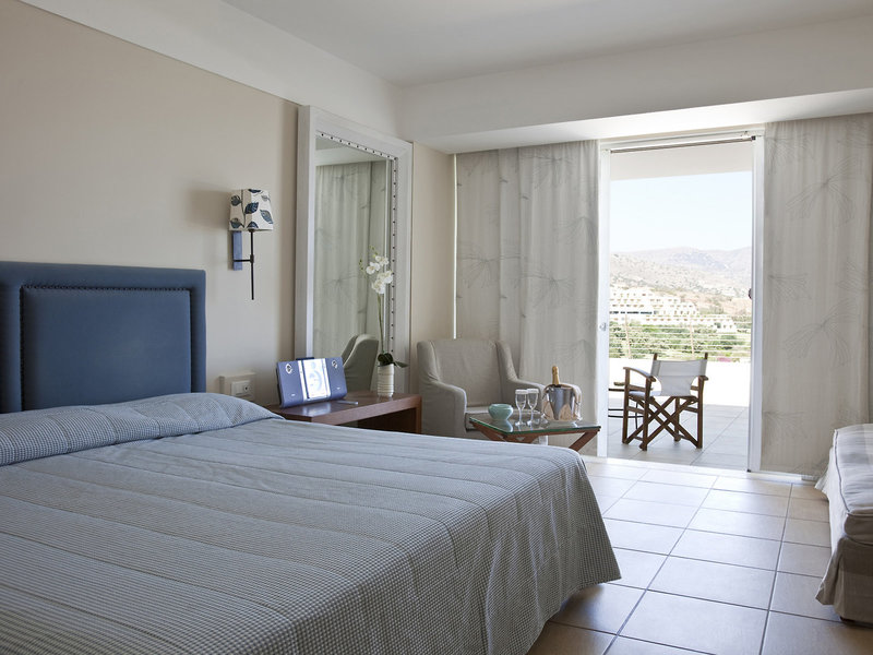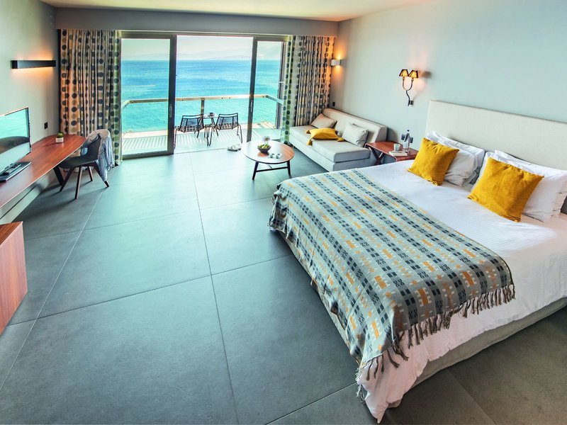 - Superior double sea view Mythica (DZM1), Doppelzimmer, im Hauptgebäude, Meerblick, ca. 31 m², Gesamtanzahl der Räume in diesem Zimmertyp: 1, Aufteilung wie folgt: kombiniertes Wohn-/Schlafzimmer, 1 King Size Bett, Klimaanlage: zentral gesteuert, Safe: ohne Gebühr, Kaffee-/Teezubereiter, Minibar: gegen Gebühr, bei All Inclusive inklusive, Softdrinks: gegen Gebühr, bei All Inclusive inklusive, Wasser: gegen Gebühr, bei All Inclusive inklusive, Minibarauffüllung: täglich, Telefon, Internet: WLAN/WiFi: ohne Gebühr, Fernseher: im Schlafzimmer, Sat-TV, DVD-Player, Radio, CD-Player, Roomservice: gegen Gebühr, Reinigungsservice: täglich, ohne Gebühr, Tageszeitung: ohne Gebühr, Sprachen: deutsch, englisch, italienisch, französisch, Badewanne, WC, Bademantel: ohne Gebühr, Slipper: ohne Gebühr, Föhn, Kosmetikspiegel, Balkon oder Terrasse: mit Sitzgelegenheit