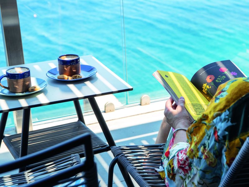 - Deep Blue Deluxe Waterfront Mythica (JSM2), Suite, Nichtraucherzimmer, Meerblick, ca. 47 m², Gesamtanzahl der Räume in diesem Zimmertyp: 1, Aufteilung wie folgt: kombiniertes Wohn-/Schlafzimmer, 1 King Size Bett, 1 Schlafsofa, Klimaanlage: ohne Gebühr, individuell regelbar, Fußboden: Fliesenboden, Safe: ohne Gebühr, Sofa, Schreibtisch, Espressomaschine, Kaffee-/Teezubereiter, Wasserkocher, Minibar: gegen Gebühr, bei All Inclusive inklusive, Softdrinks: gegen Gebühr, bei All Inclusive inklusive, Wasser: gegen Gebühr, bei All Inclusive inklusive, Minibarauffüllung: täglich, Telefon, Fernseher: im Schlafzimmer, Sat-TV, DVD-Player, CD-Player, Roomservice: gegen Gebühr, Reinigungsservice: täglich, ohne Gebühr, Tageszeitung: ohne Gebühr, separate Dusche, Regendusche, Badewanne, separates WC, Föhn, Kosmetikspiegel, Balkon: mit Sitzgelegenheit