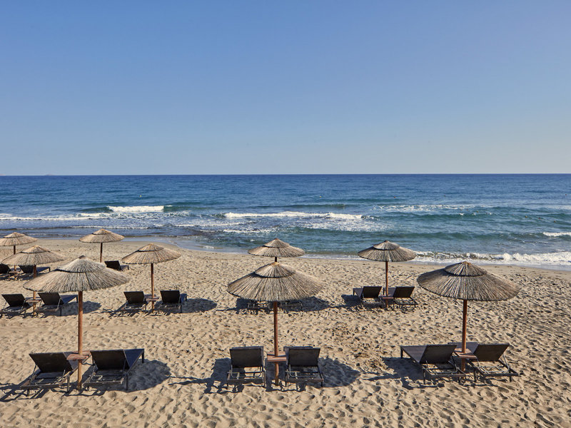 - Strand „Lyttos Beach“: Sand, Kies, Liegen, Sonnenschirme