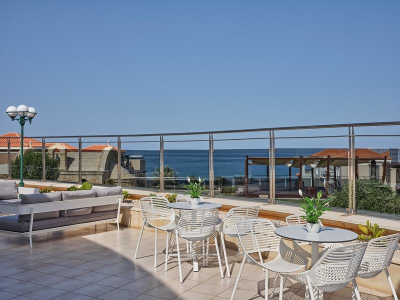 - Double room Sea view (DZX2), Doppelzimmer, Nichtraucherzimmer, ca. 21 - 25 m², Gesamtanzahl der Räume in diesem Zimmertyp: 1, Aufteilung wie folgt: kombiniertes Wohn-/Schlafzimmer, Klimaanlage: ohne Gebühr, zentral gesteuert, Fußboden: Fliesenboden, Safe: ohne Gebühr, Schreibtisch, Bügeleisen, Bügelbrett, Kaffee-/Teezubereiter, Wasserkocher, Minibar: ohne Gebühr, bei All Inclusive inklusive, Softdrinks: ohne Gebühr, bei All Inclusive inklusive, Wasser: ohne Gebühr, bei All Inclusive inklusive, alkoholische Getränke: ohne Gebühr, bei All Inclusive inklusive, Minibarauffüllung: täglich, Telefon, Internet: WLAN/WiFi: ohne Gebühr, Fernseher: Sat-TV, Roomservice: 07:00 Uhr - 00:00 Uhr, gegen Gebühr, Reinigungsservice: täglich, ohne Gebühr, Dusche, Badewanne, WC, Bademantel: ohne Gebühr, Slipper: ohne Gebühr, Föhn, Kosmetikspiegel, Balkon oder Terrasse: mit Sitzgelegenheit