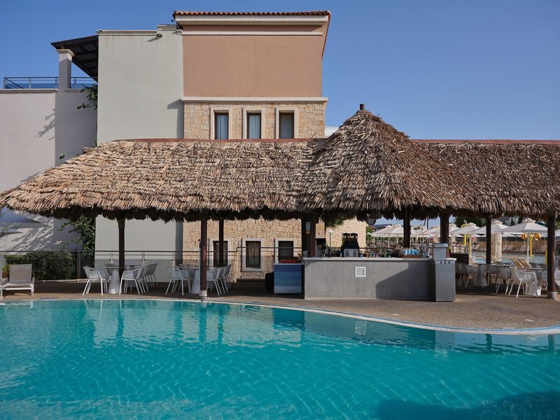 Poloha a okolie Približne 500 m od dedinky Analipsi s obchodmi, tavernami a barmi. Na piesočnatú/kamienkovú pláž sa dostanete po tichej ceste. Chersonissos s malým prístavom, množstvom zábavných podnikov, reštaurácií a barov je vzdialený asi 4 km. Čas prenosu: cca 40 minút.