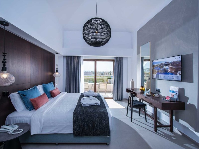 - Double Room Side Sea View (DZX8), Doppelzimmer, Nichtraucherzimmer, eingeschränkter Meerblick, ca. 30 m², Gesamtanzahl der Räume in diesem Zimmertyp: 1, Babybett: ohne Gebühr, Klimaanlage: zentral gesteuert, Fußboden: Fliesenboden, Safe, Schreibtisch, Bügeleisen, Bügelbrett, Kaffee-/Teezubereiter, Wasserkocher, Minibar: ohne Gebühr, bei All Inclusive inklusive, Softdrinks: ohne Gebühr, bei All Inclusive inklusive, Wasser: ohne Gebühr, bei All Inclusive inklusive, alkoholische Getränke: ohne Gebühr, bei All Inclusive inklusive, Minibarauffüllung: täglich, Telefon, Internet: WLAN/WiFi, Fernseher: Sat-TV, Roomservice: täglich, 07:00 Uhr - 00:00 Uhr, gegen Gebühr, Reinigungsservice: täglich, ohne Gebühr, Badewanne, WC, Bademantel, Slipper, Föhn, Kosmetikspiegel, Balkon oder Terrasse: mit Sitzgelegenheit