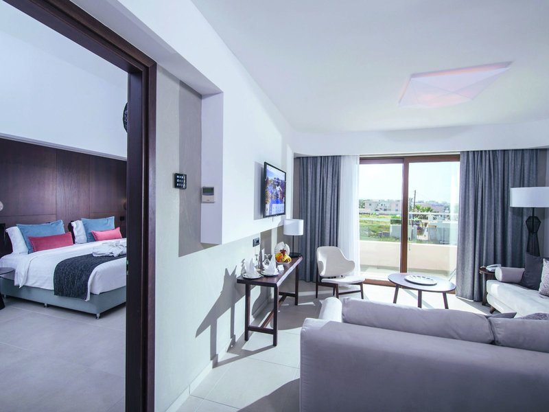 - Family room Sea view (DZM3), Familienzimmer, Nichtraucherzimmer, Meerblick, ca. 41 m², bestehend aus 2 Zimmern, optisch getrennt durch Schiebetür, Babybett: ohne Gebühr, Anfrage & Reservierung notwendig, Klimaanlage: zentral gesteuert, Fußboden: Fliesenboden, Safe, Schreibtisch, Bügeleisen, Bügelbrett, Kaffee-/Teezubereiter, Wasserkocher, Minibar: ohne Gebühr, bei All Inclusive inklusive, Softdrinks: ohne Gebühr, bei All Inclusive inklusive, Wasser: ohne Gebühr, bei All Inclusive inklusive, alkoholische Getränke: ohne Gebühr, bei All Inclusive inklusive, Minibarauffüllung: täglich, Telefon, Internet: WLAN/WiFi, Fernseher: Sat-TV, Roomservice: täglich 07:00 Uhr - 00:00 Uhr, gegen Gebühr, Reinigungsservice: täglich, ohne Gebühr, Dusche, Badewanne, WC, Bademantel, Slipper, Föhn, Kosmetikspiegel, Balkon oder Terrasse: mit Sitzgelegenheit