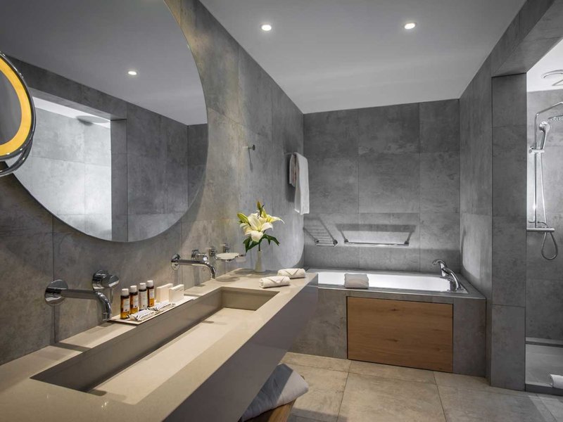 - Suite Inland view (SUX1), Suite, Nichtraucherzimmer, Landblick, ca. 47 m², Gesamtanzahl der Räume in diesem Zimmertyp: 2, Aufteilung wie folgt: Wohnzimmer, 1 Schlafzimmer, 1 Schlafsofa, Babybett: ohne Gebühr, Anfrage & Reservierung notwendig, Klimaanlage: zentral gesteuert, Fußboden: Fliesenboden, Safe: ohne Gebühr, Schreibtisch, Bügeleisen, Bügelbrett, Kaffee-/Teezubereiter, Wasserkocher, Minibar: ohne Gebühr, bei All Inclusive inklusive, Softdrinks: ohne Gebühr, bei All Inclusive inklusive, Wasser: ohne Gebühr, bei All Inclusive inklusive, alkoholische Getränke: ohne Gebühr, bei All Inclusive inklusive, Minibarauffüllung: täglich, Telefon, Internet: WLAN/WiFi: ohne Gebühr, Fernseher: Flatscreen, im Schlafzimmer, Sat-TV, Roomservice: 07:00 Uhr - 00:00 Uhr, gegen Gebühr, Reinigungsservice: täglich, ohne Gebühr, Badewanne, WC, Bademantel: ohne Gebühr, Slipper: ohne Gebühr, Föhn, Kosmetikspiegel, Balkon oder Terrasse: mit Sitzgelegenheit