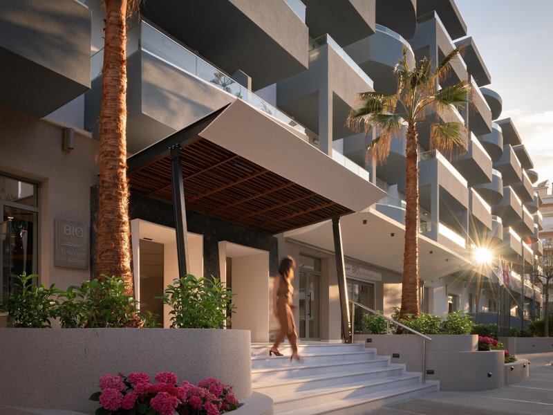 - Strand „BIO BEACH“: Sand, Treppen zum Strand, öffentlich, hoteleigen, Liegestühle: gegen Gebühr, Sonnenschirme: gegen Gebühr