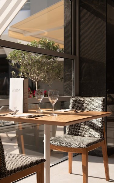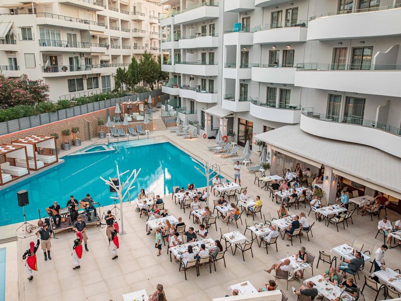 - Hlavná reštaurácia: Kuchyňa: grécka, medzinárodná, stredomorská, regionálna, diétna kuchyňa, bezlepkové jedlá, bezlaktózové jedlá, ľahké jedlá, vegetariánske jedlá, bufet, show cooking, denne 7:00 - 10:00, 1:00: 00:00 – 15:00 a 18:15 – 21:15