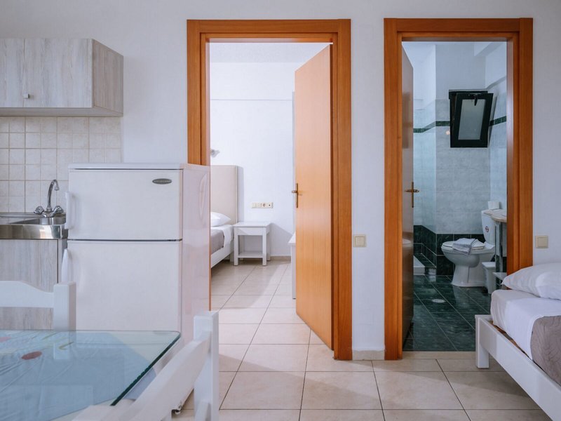 Vaše ubytovanie: Izby pozostávajú z obývacej izby, kuchyne a kúpeľne, zatiaľ čo klimatizácia a kúrenie zabezpečujú príjemnú klímu v miestnosti. Hostia si môžu oddýchnuť a vychutnať si výhľad na more na balkóne alebo súkromnej terase väčšiny izieb. Izby majú manželskú posteľ a rozkladaciu pohovku. K dispozícii sú samostatné spálne. K dispozícii je aj detská postieľka a prístelka. K dispozícii je aj trezor a minibar. Kuchynka je vybavená chladničkou, minichladničkou a zariadením na prípravu čaju/kávy. Telefón, satelitná televízia a WiFi (bezplatné) poskytujú najlepší komfort počas dovolenky. Kúpeľňa je vybavená sprchovacím kútom a vaňou a obsahuje sušič vlasov. Apartmánový hotel ponúka rodinné a nefajčiarske izby.
