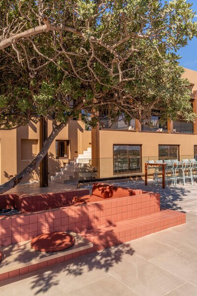 Das an einem Hang gelegene Hotel, befindet sich oberhalb der Mirabello Bucht. Ein kleiner kieseliger Strand ist nur ca. 200 m entfernt. Sie erreichen Agios Nikolaos nach ca. 10 km und das Fischerdorf Elounda nach ca.2 km. Bis zum Flughafen Heraklion sind es ca. 70 km Distanz, bis zum Flughafen Sitia etwa. 80 km.