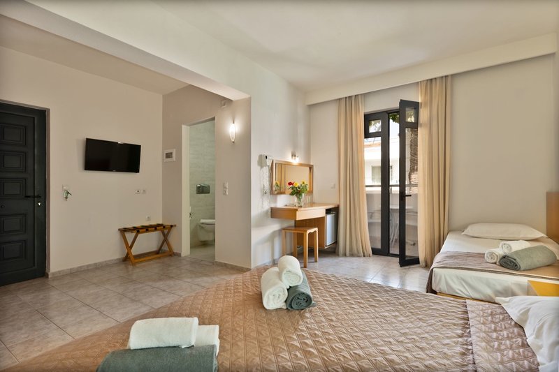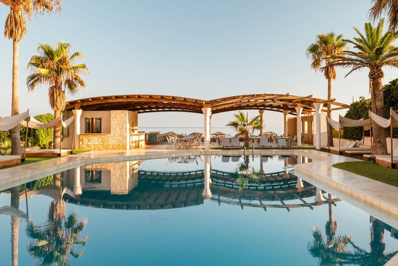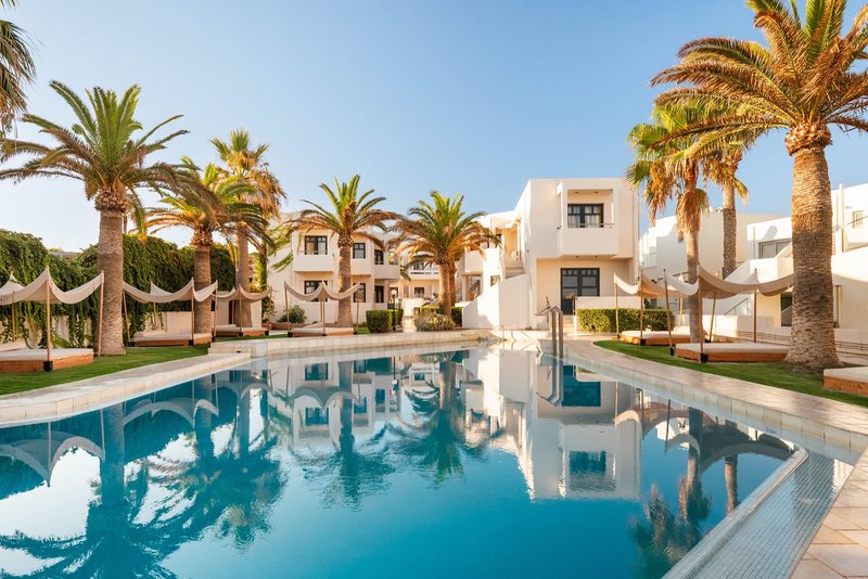Lage: Das Eva Bay liegt ruhig und direkt am langen Sand-/Kiesstrand von Adelianos Kampos. Die Entfernung zur sehenswerten Altstadt von Rethymno mit vielen Tavernen, Restaurants, Bars und Einkaufsmöglichkeiten beträgt etwa 6 km. Der Flughafen von Heraklion befindet sich ca. 75 km, der Flughafen von Chania ca. 70 km vom Hotel entfernt.
