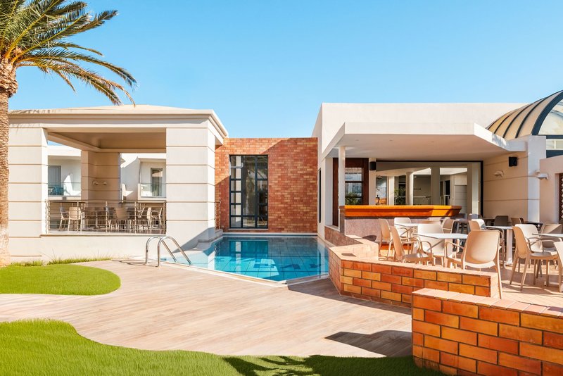 Ausstattung: Das Adults-only-Hotel Eva Bay (buchbar ab 16 Jahren) verfügt über insgesamt 108 Zimmer und bietet eine Lobby mit 24-h-Rezeption, Gepäckraum, Internetecke, Hauptrestaurant sowie eine Loungebar. Wi-Fi ist in der Anlage inklusive. In der gepflegten Außenanlage befindet sich ein Swimmingpool mit Sonnenterrasse und Pool-/Snackbar. Liegen und Schirme sind am Pool inklusive und am Strand gegen Gebühr. Badetücher erhalten Sie vor Ort gegen Gebühr. Parkplätze am Hotel sind je nach Verfügbarkeit inklusive.