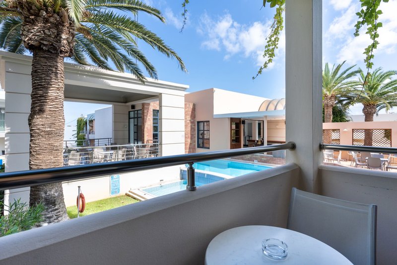 Vybavenie: Hotel Eva Bay je určený len pre dospelých (rezervácie možné od 16 rokov) a má celkovo 108 izieb a ponúka vstupnú halu s 24-hodinovou recepciou, úschovňu batožiny, internetový kútik, hlavnú reštauráciu a lounge bar. Wi-Fi je v cene. Dobre udržiavaný vonkajší komplex ponúka bazén so slnečnou terasou a snack barom pri bazéne. Lehátka a slnečníky sú zahrnuté v cene pri bazéne a na pláži sú k dispozícii za poplatok. Plážové osušky sú k dispozícii na mieste za poplatok. Parkovanie pri hoteli je v cene, v závislosti od dostupnosti.