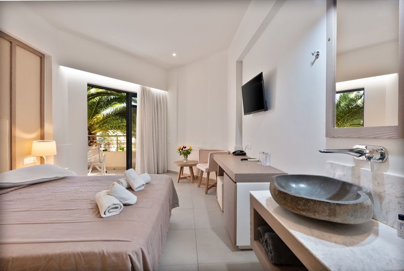Doppelzimmer: Die Doppelzimmer verfügen über Bad oder Dusche/WC, Föhn, Pflegeprodukte, individuell regulierbare Klimaanlage, Safe (inklusive), Telefon, LCD Sat.-TV, Wi-Fi, Minikühlschrank sowie Balkon oder Terrasse (D). Wahlweise gegen Aufpreis auch mit seitlichem Meerblick buchbar (DMS).